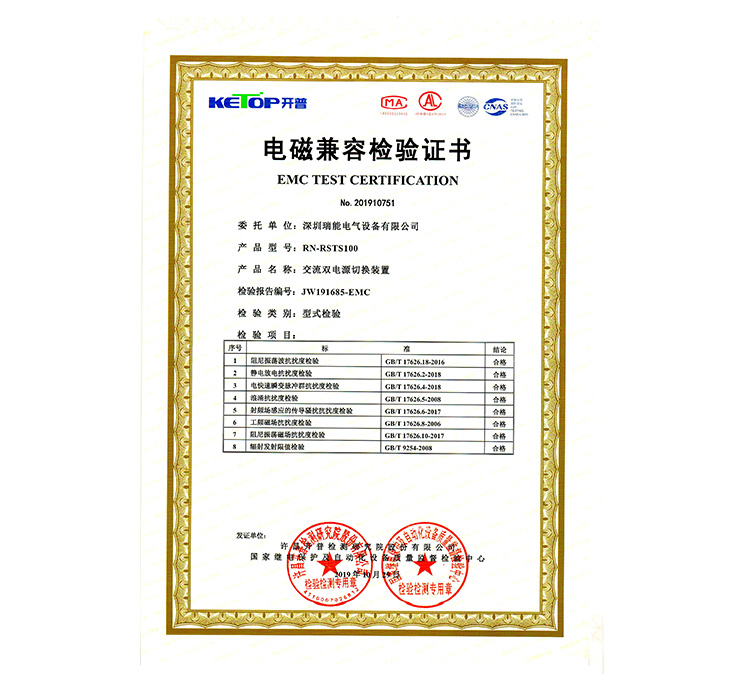 交流双电源切换装置检电磁兼容检验证书